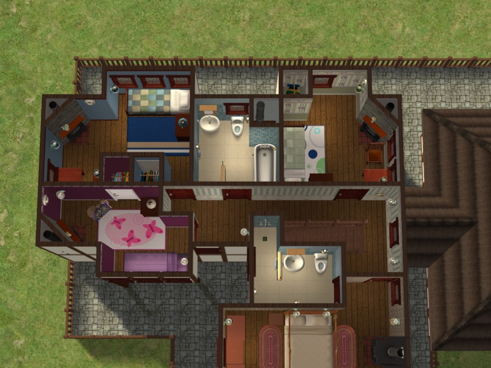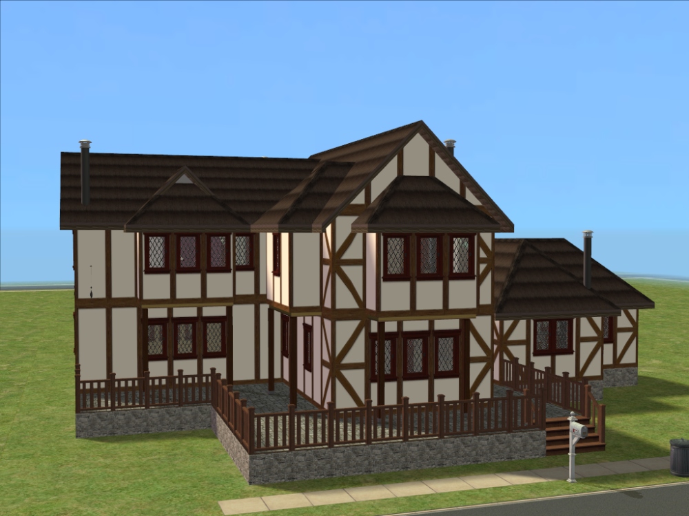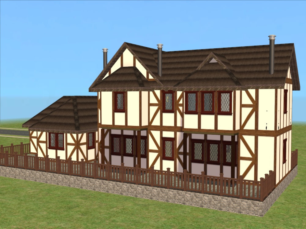More pics. I've extended to the side. It has 4 bedrooms, family bathroom, en suite and a half bath. I've added a large library style room to the ground floor, extended the staging etc. I've not had time to do any landscaping yet and the decor is still not finished in some rooms.
