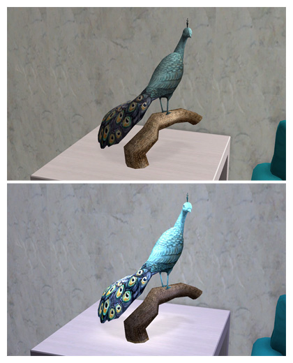 I'm really enjoying seeing all the pictures of the gifts! I like the servo bench replacement, it's cute. There are an impressive amount of peacocks in the Peacock Goodness pictures, and I never cease to find it amazing how many things you can get new ones of if you recolor things with the right number/type of slaved items. (If that made sense outside my head.)