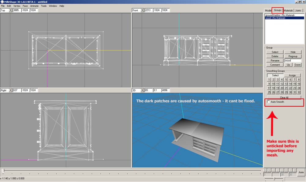 DAMNATION. This is my fault and I forgot to tell you. There is this stupid feature in MILKSHAPE called AUTOSMOOTH. It should always be off and since you said you never used your Milkshape I thought it would be ok.