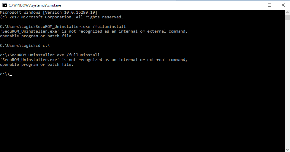 SecuROM_Uninstaller.exe' is not recognized as an internal or external command,