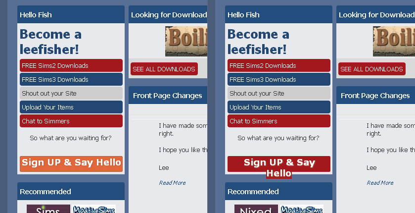 Very nice! Big Grin I really like it - but the "sign up & say hello" button doesn't play nice with my 1280*1024 screen when I hover over it. See attached screenshot; the left image is what it looks like normally, the right one is what happens onMouseOver. Undecided