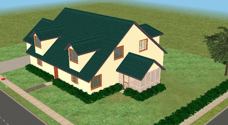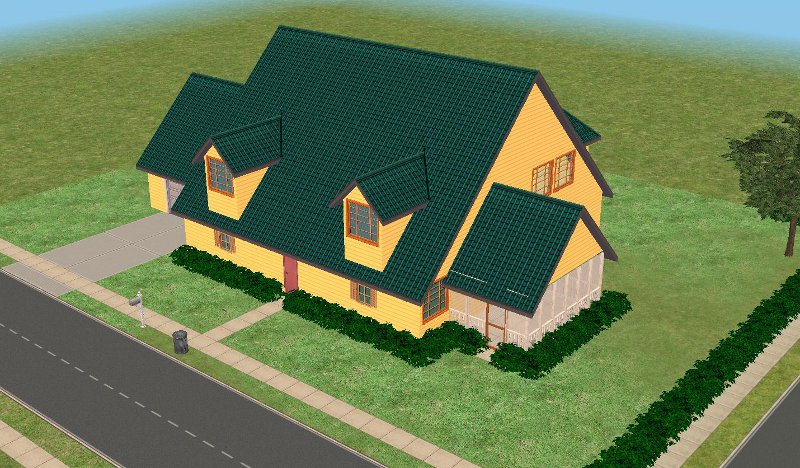 I had the idea for a long time to make the family guy house for The Sims 2 ever since I saw the Sims 3 version. I like the way it looks so far, could use some extra tweaking though, that's where you all come in. I know how to mesh most things, and make walls and floors, I know how to recolor everything. I've already added new meshes a ground cover, and a recolor to this lot. I can do more if I need to. I can't mesh doors or windows right now. I wonder what you all think of this.