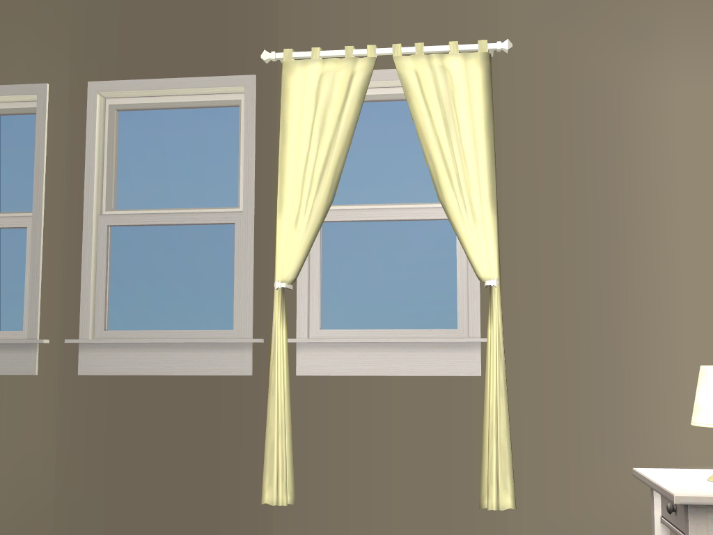 The only other thing I would say is that you need to add texture to your curtain rail. If you look around your house at the different textures in it, you'll notice there are no matte colours. A very light texturing to the pole willl make it look more real and less 'this is the mesh'.