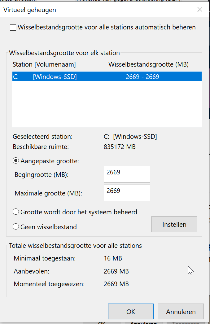 @BoilingOil that would be a pity! I do wonder, what value should I set for Virtual Memory? Is it safe to set it higher than the recommended value, or only equal or lower than te recommended value? (see screenshot of my first post)
