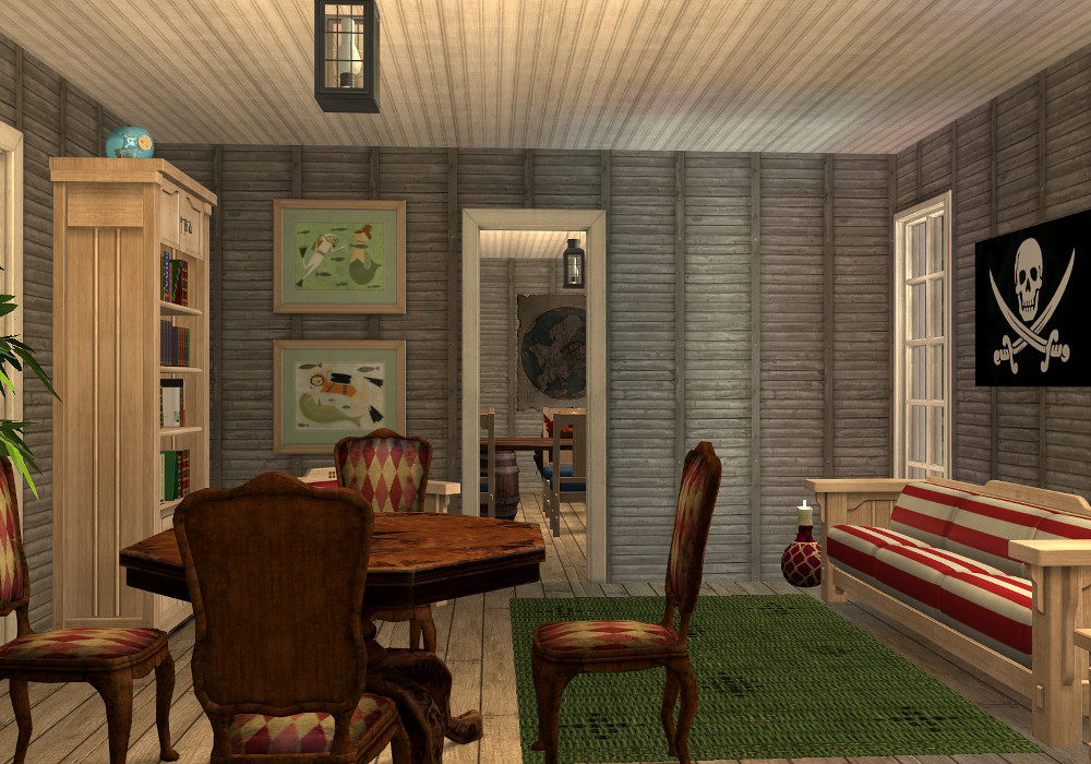 I really love the house, shasta! I think the parrot outside is my favourite bit, or maybe the fishing net and broken window, or wait, is that dining table a piece of wood on top of barrels? Now I can't decide Big Grin