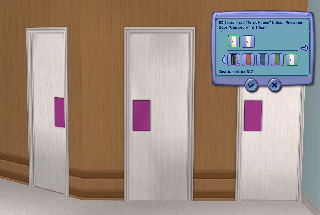 I added a MMAT for fansee's handle. Well, not HER handle. The door's handle. Big Grin I did fix integrity though but I usually do. Unless it's repositoried lamps. You do not want to do that with repositoried lamps. Unless you want to go back and fix stuff. (And that same stuff probably needs fixed in the door packages I did.)