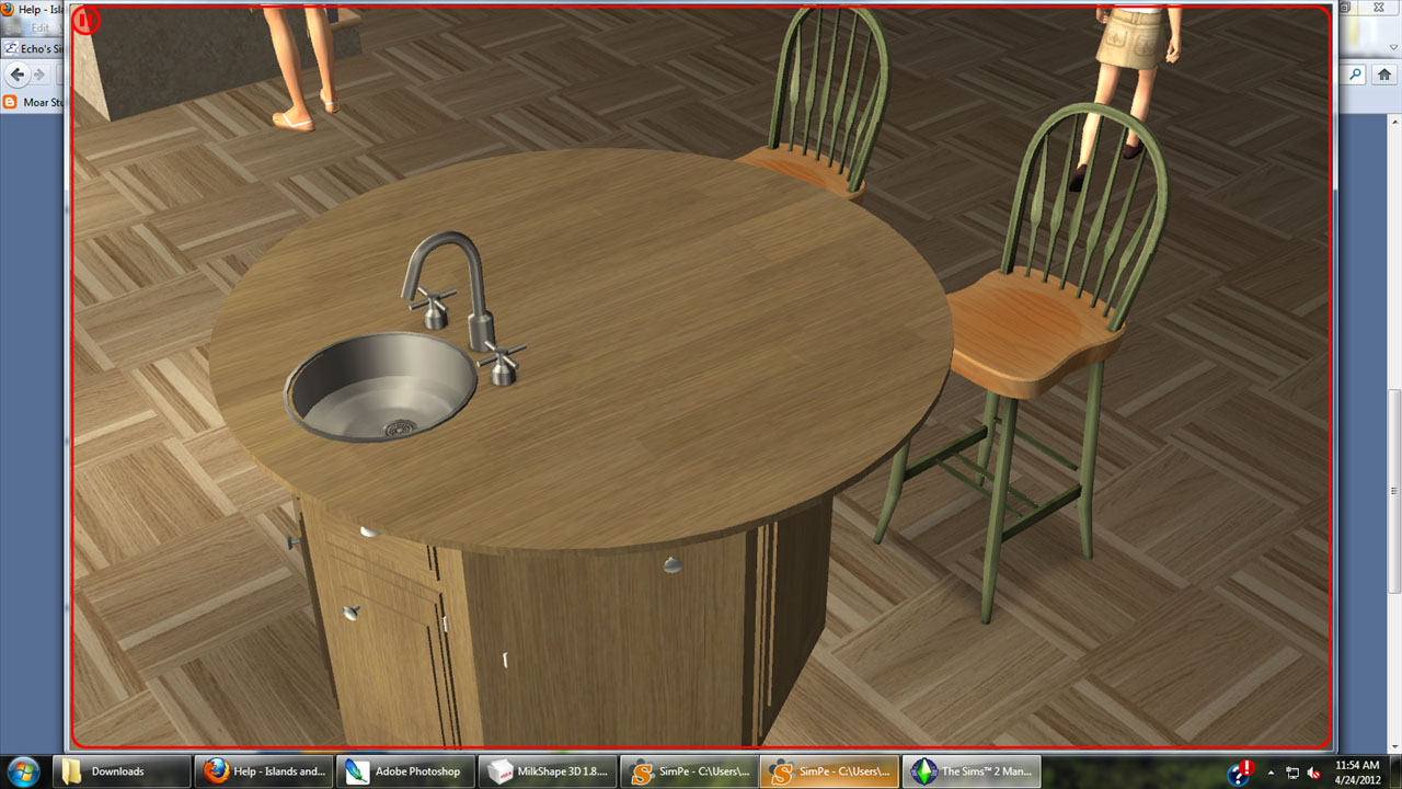 In other developments, I decided to work on the table/sink combo since I already made a chair for it (barstool height, it works like a chair though). ANDDDDD.. my sims have been using the sink with no problem so far.