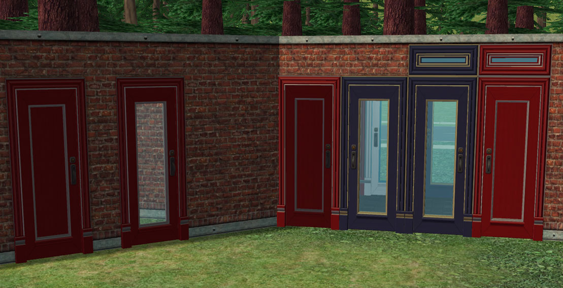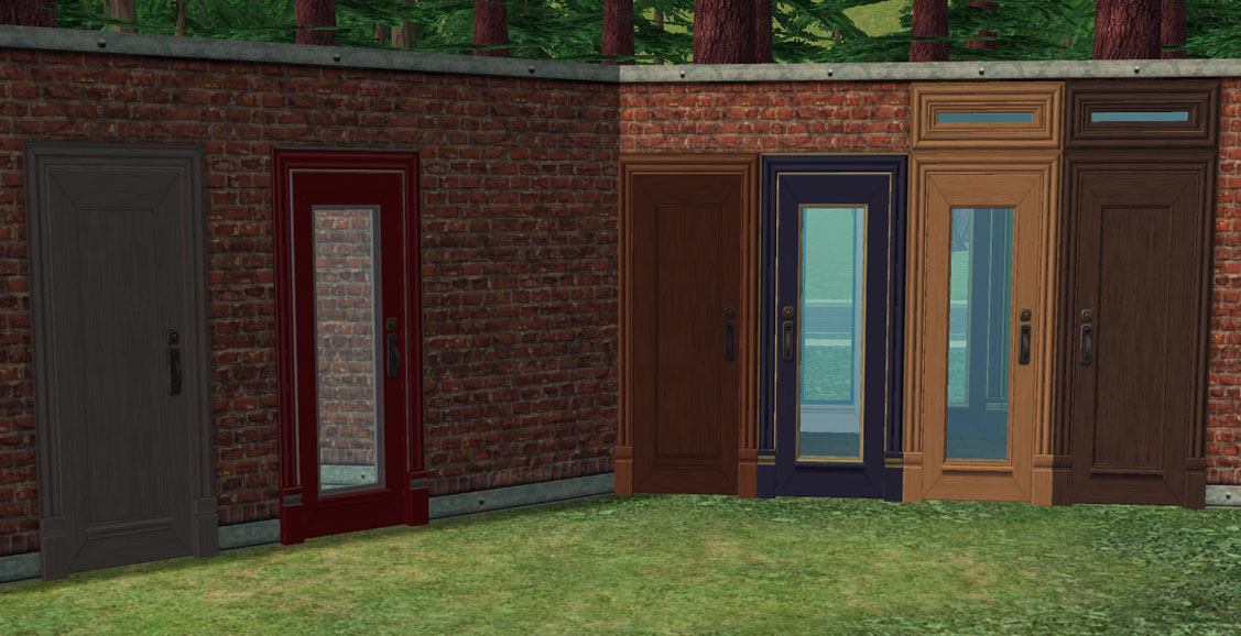 I just put these in my game now. I don't have any recolors for them but all of the original colors are all showing up. One thing I did notice is that light still comes through these doors like they had glass. I know there's a way to fix it because people have fixed broken windows but I don't know how involved it is.