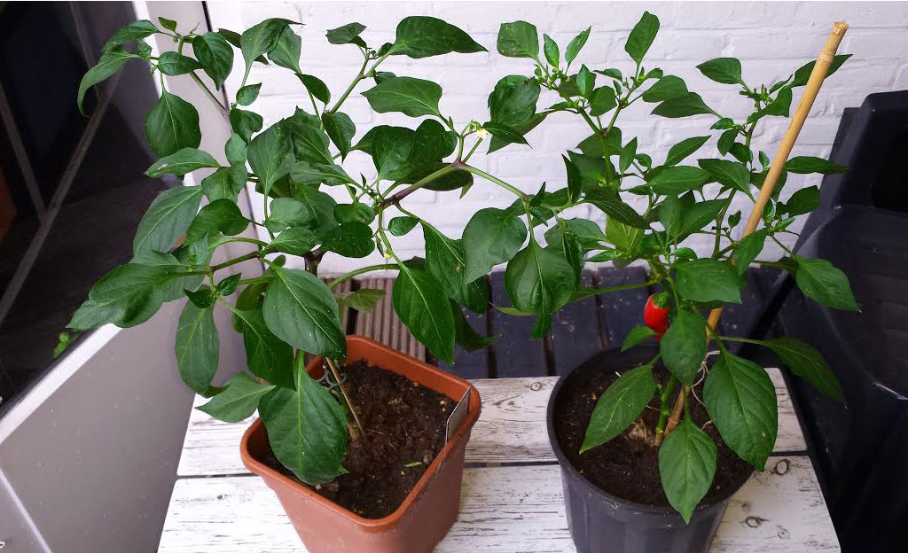 A lot healthier looking than our potted vegetables. The leaves need dark green smilie faces 'I am thriving"