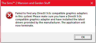 Hello! I seem to be having a bit of a problem with my computer-- that is, it won't run Sims 2 with my nice NVIDIA 1050 Ti card. With my integrated Intel graphics, it boots! ...That is, until I try to load a world, in which the loading animation goes around and then my game stops responding. But, it boots, so the graphics aren't a problem. Whenever I boot up the game, it gives me an error message. When I boot up the game in windowed mode, it gives me an entirely white screen with music playing and the cursor visible and able to move around. (The window is larger now, but my screenshot button is broken? Weird. Unrelated, my computer's a mess hardware-wise, whatever.)