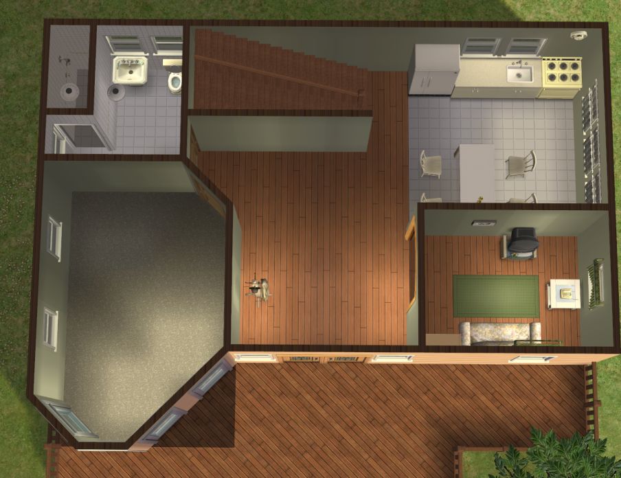 Just for the record, Xander, I love the arch in the downstairs bathroom, I would just move it around the side. Then you can fit a bath, toilet and sink in the bathroom. Snap on the kitchen Lee, that is where mine is. Tongue I thought of a way I can decorate without costing anything, technically it's not cheating because CC is allowed, however I will not clone and reprice all the Maxis items. Smile