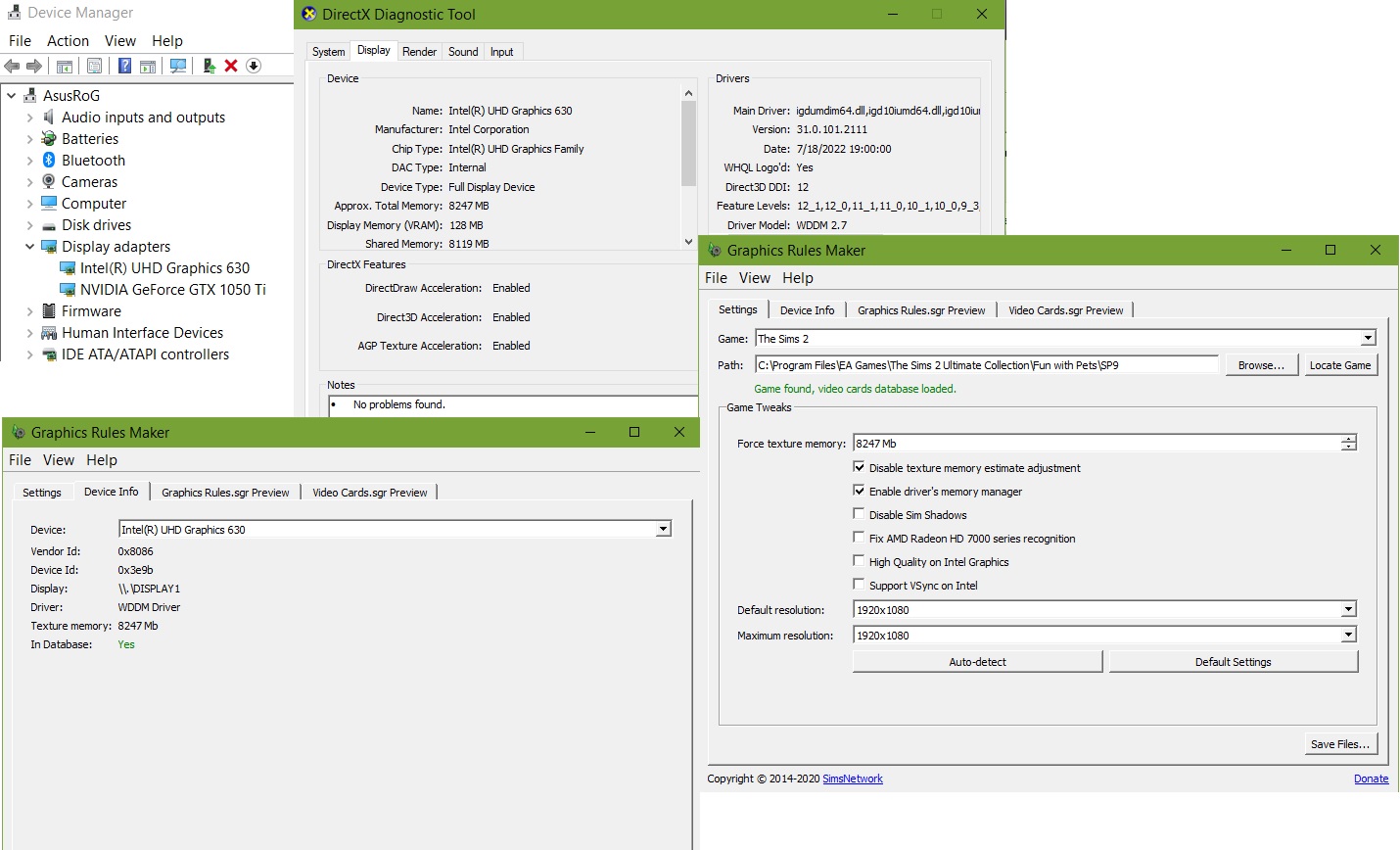 I've tried all sorts of steps to get the game open; using GRM, using Windowed Mode, using the 4gb Patch, adjusting the Graphics settings, uninstalling/reinstalling TS2 several times, and I've tried using Safe Mode but the EA app won't open. Here are some screenshots of my laptop. Please let me know if you need more info. Your help will be greatly appreciated.