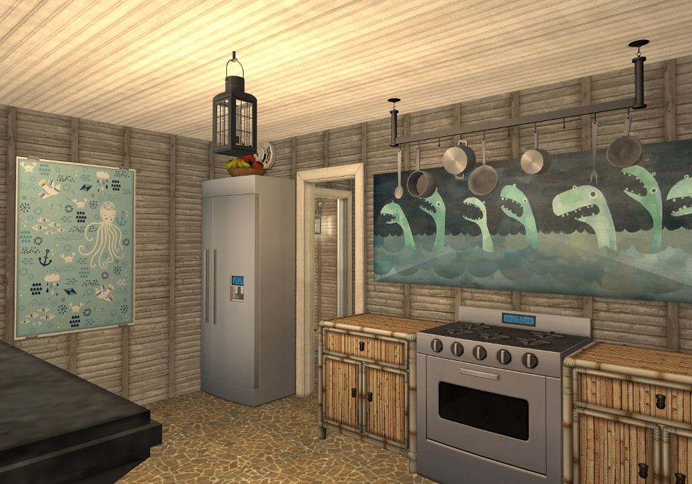 I really love the house, shasta! I think the parrot outside is my favourite bit, or maybe the fishing net and broken window, or wait, is that dining table a piece of wood on top of barrels? Now I can't decide Big Grin