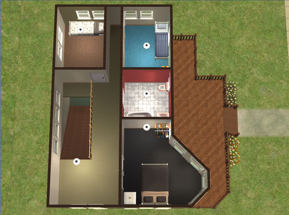 I based it as if two people were living there and didn't have kids, even though I did supply a kids bed for each room and a teddy bear for each kid, provided there were only two kids. So in the end I furnished 3 bedrooms, 1 bathroom, 1 living area and a kitchen/dining area. All rooms have lighting and I only sold two of the 4 bushes outside.