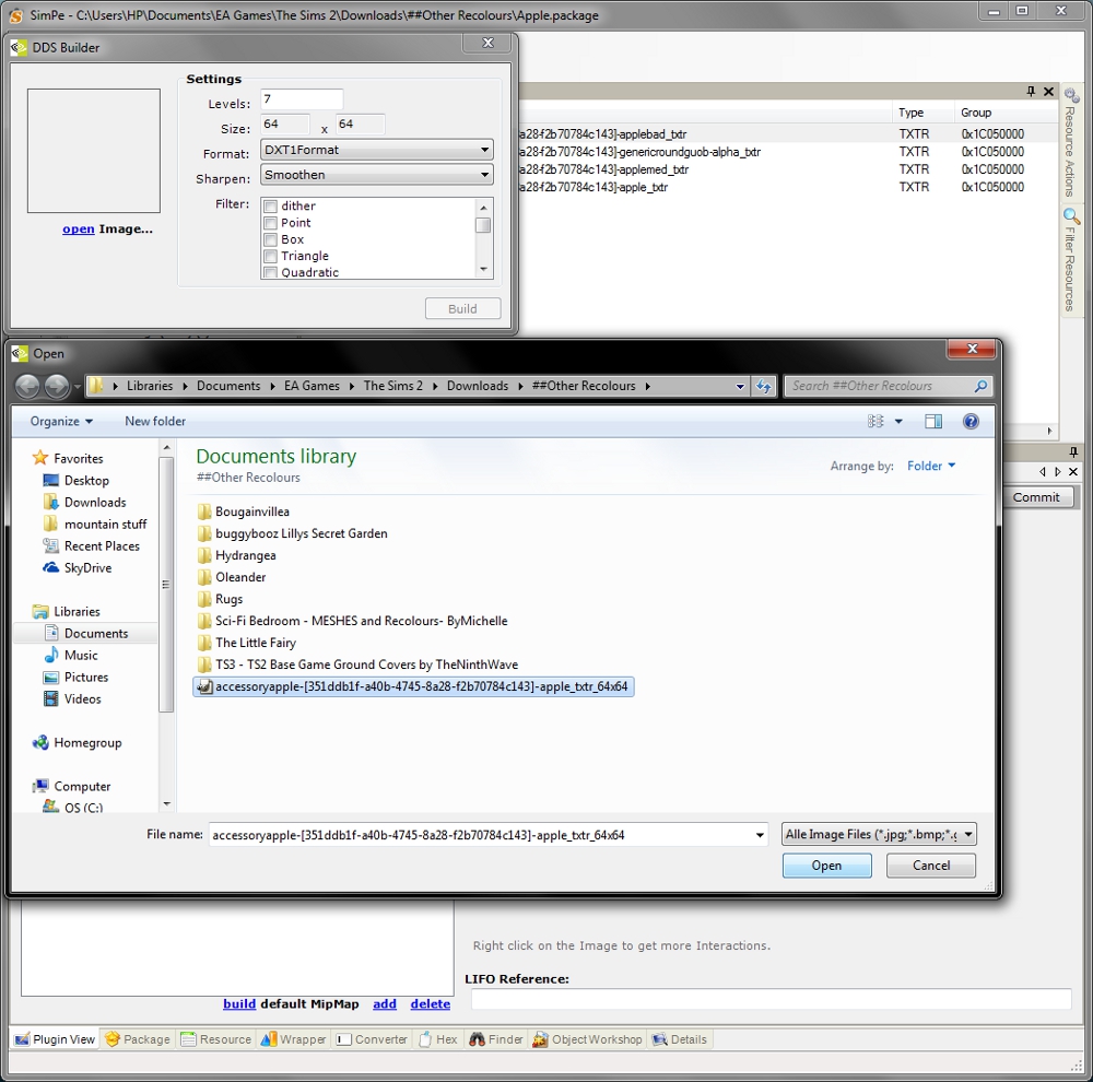 When the DDS Builder pops up click on "OPEN Image", find the exported Texture Image (TXTR), click on "Open". (pic4)