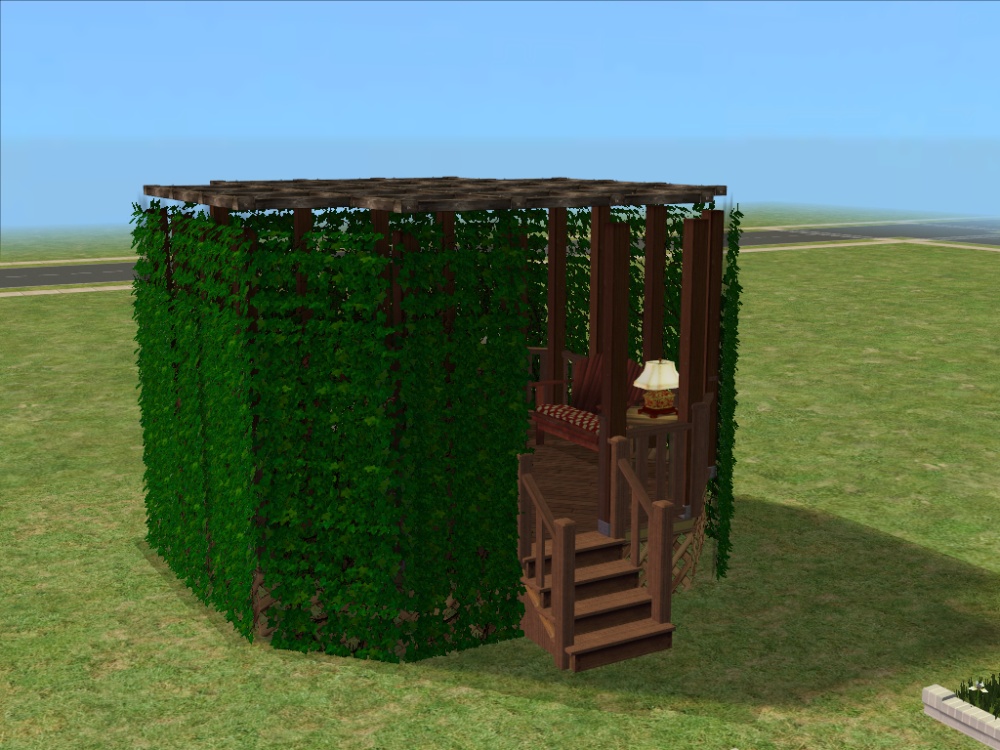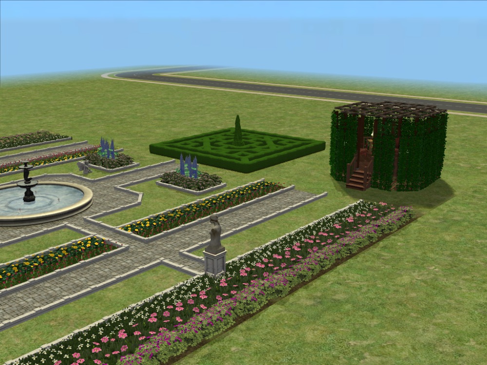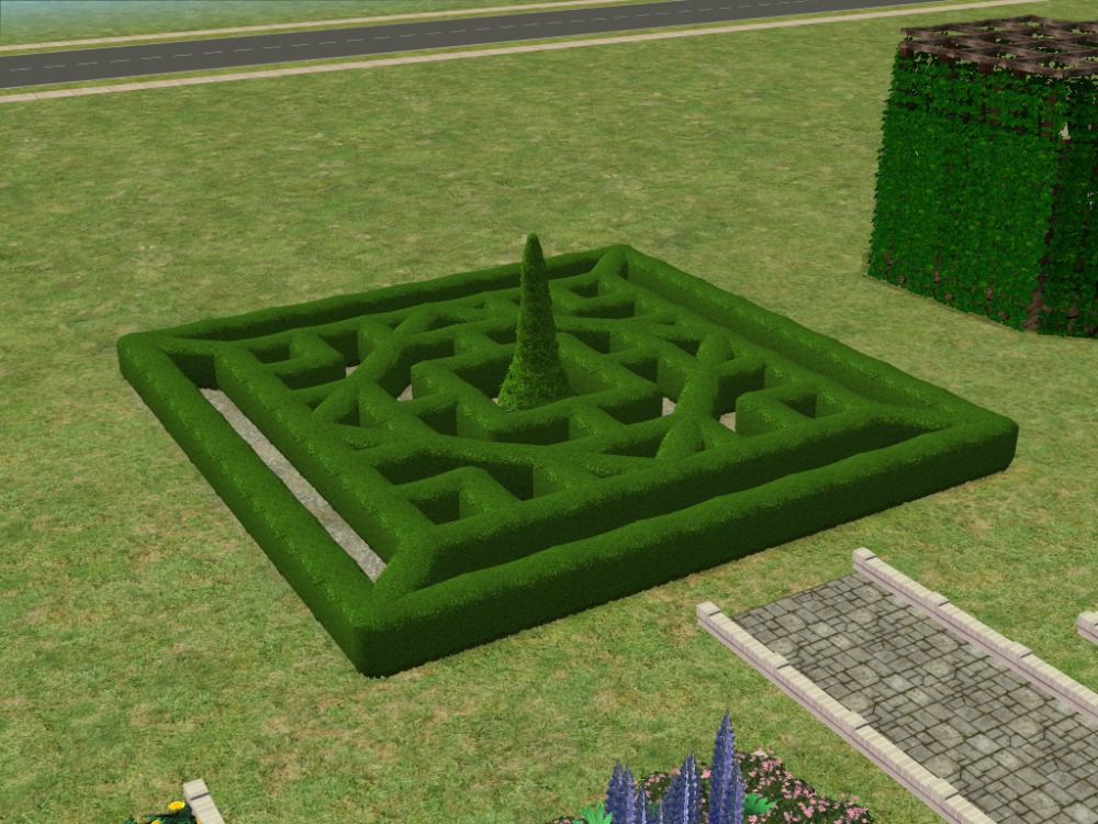 Thanks Guys for all the feedback and suggestions. Here are some pics of the new knot garden using nengi's small hedge-fence and I've constructed a gazebo, using phoenix phaerie's ivy. (In the picture I've removed one wall of ivy so that you can see inside.) Not sure I like the gazebo though. If I keep it I'm planning on changing the lamps inside for Lee's lighthouse lights.