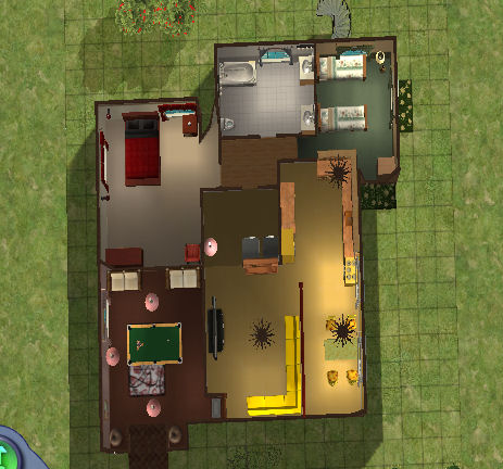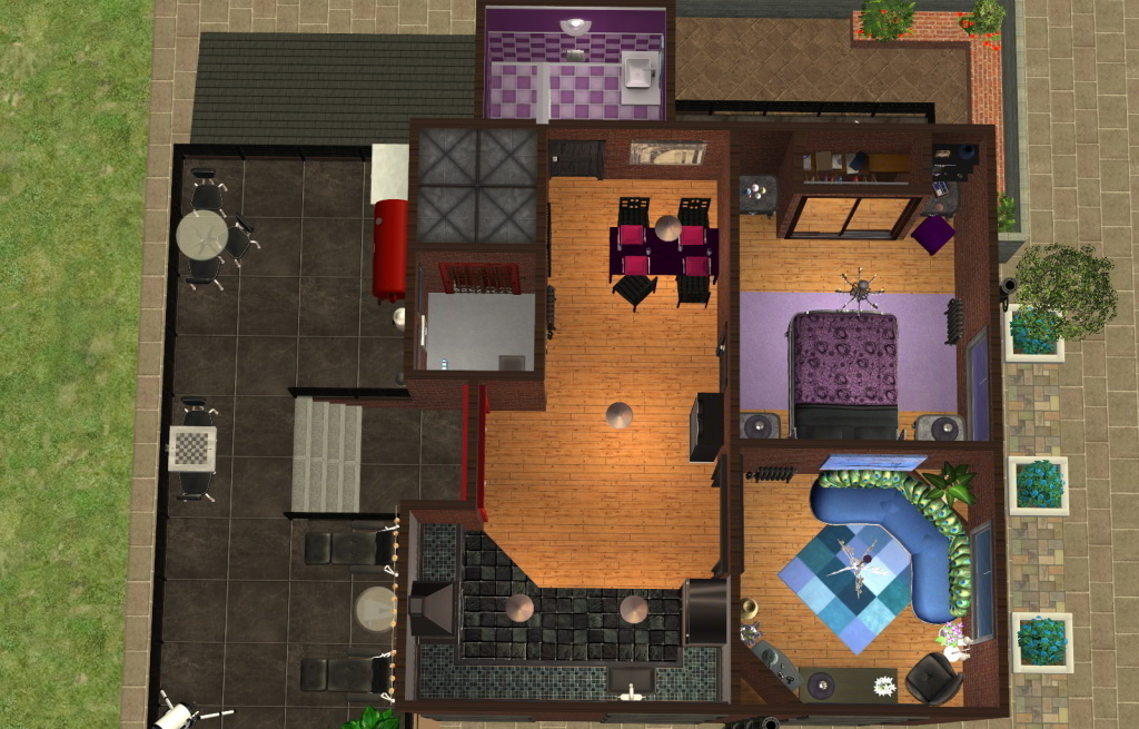 This house is 3 stories, and each floor is its own self contained place. The top floor is meant for a single female sim.