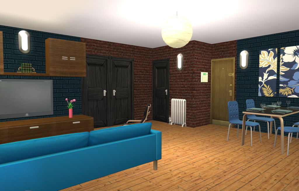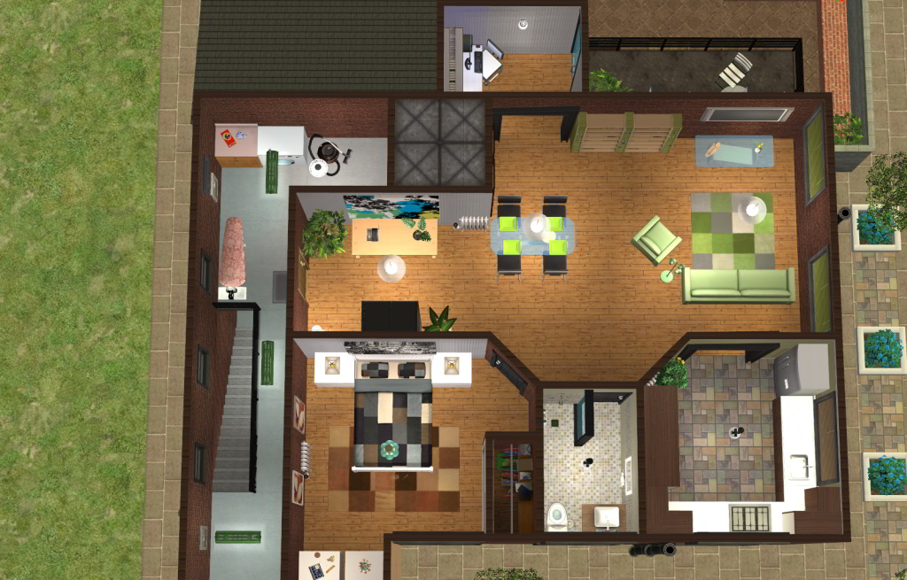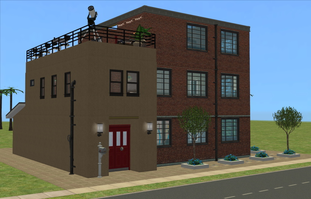 At last I have managed to complete this challenge (in between the Build a Business contest over at MTS). I have tried to keep it looking as much like a factory building as possible so the interior walls remain brick, with some painted. I have tiled the bathrooms and kitchens. Each have a modern look except the top floor - I couldn't stop myself from using some art deco CC that I found
