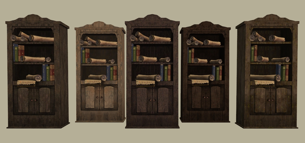 Ooh those look nice! Personally the halfsize ones are always my faves since they don't block your view of the sims. These big ones are nice too though. Very nice. They'd probably be more versatile if emptied since the deco on them is like, a bunch of old scrolls which may look odd in most sim homes.