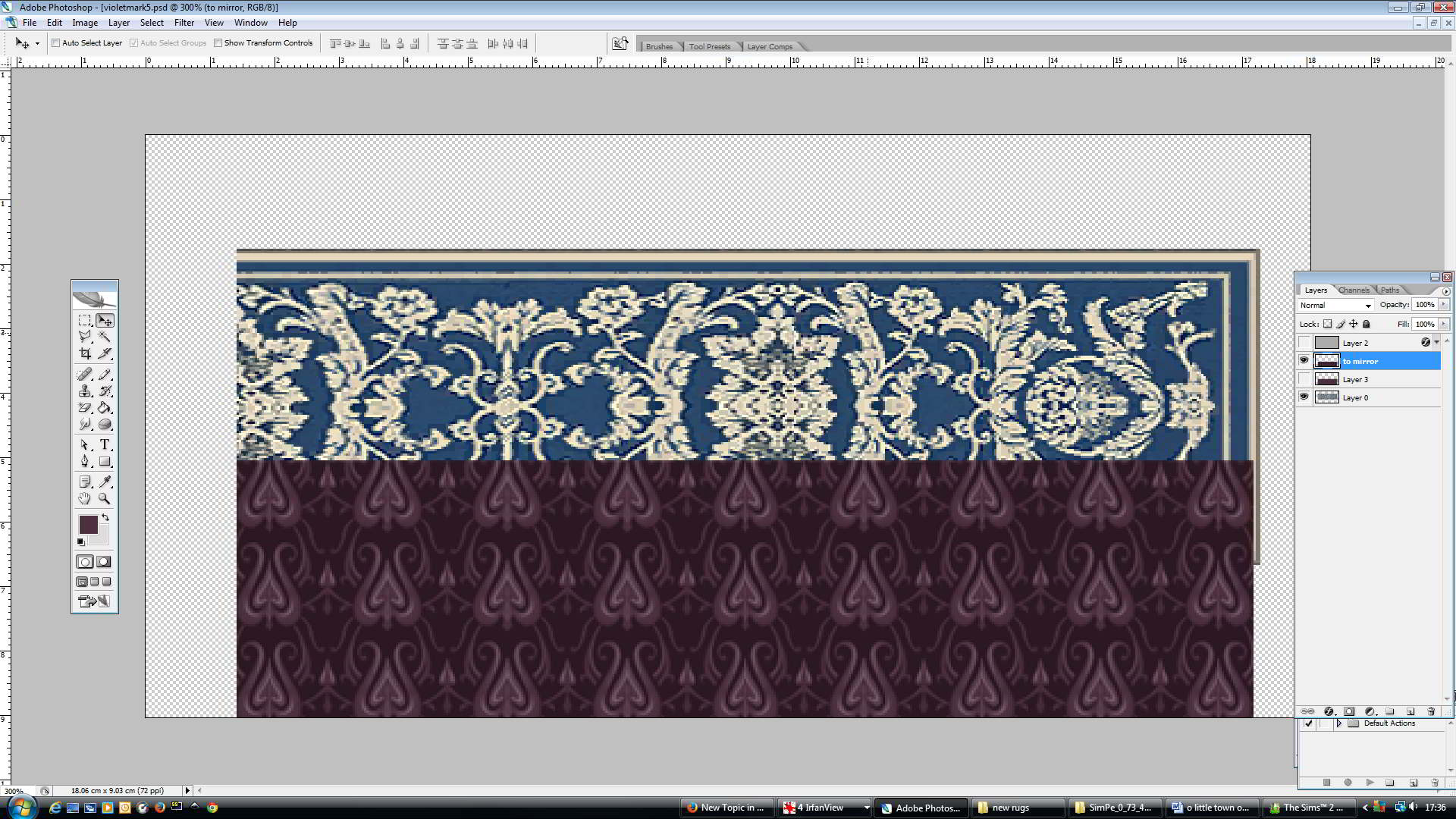 I made one layer starting from the centre of the full rug and then copied that layer, flipped it and joined it back in.
