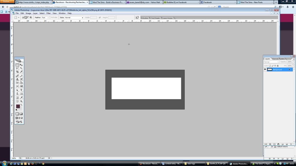1. Make another recolour package of the rug. And export the image from that - it will include the original alpha channel (which is what we want). I'm going to call that "O.package"