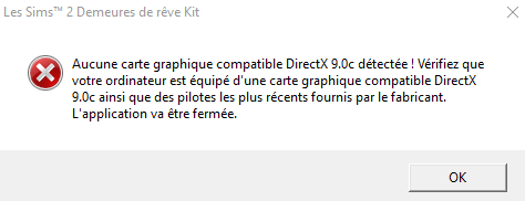 I bought a new computer, Windows 10, and since, I can't play anymore in the Sims 2 Ultimate Collection. I receive the infamous message about Directx 9.0c. I've got two graphic cards, Intel Graphics 520 and a more powerful one, AMD Radeon.