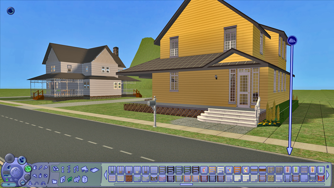 You can see the fence on the porch of the house next door, but on the yellow house it is invisible. It is there - you canNOT put down another fence unless you delete the invisible one first. In the catalog, the icon is blank (bottom right) but the description identifies it, so I know that's THAT fences icon. Other fences work fine.