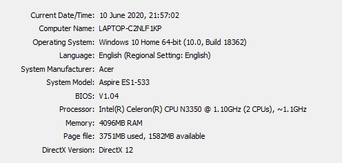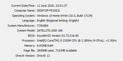 I'm not that speedy. I went off to do some googling and figured it was a bad idea given I wasn't sure the Acer had ever run anything other than Windows 10. Thank you for confirming this was the correct choice! Satellite's spec is attached and it has previously run Win 7. I don't remember how the game ran on it as it was so long ago now, but this was my only comp back then, so it must’ve been OK. It was purchased in 2011. I didn't realise it had 8GB Ram either - thought it was 4GB, so now feel like a bit of a tit for struggling along with the Acer for so long, with this sat in a cupboard!