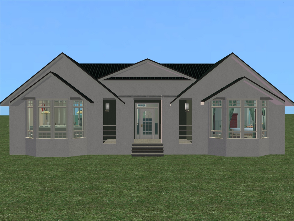 Also the other big thing is that the roof colour was changed to the Dark Green, to match the house I was using as a reference example for the style. It's a good idea when creating a house in a particular style to get resource pictures to see what sort of details they do and don't have that define the type. Having a dark roof like you had originally is a good idea.