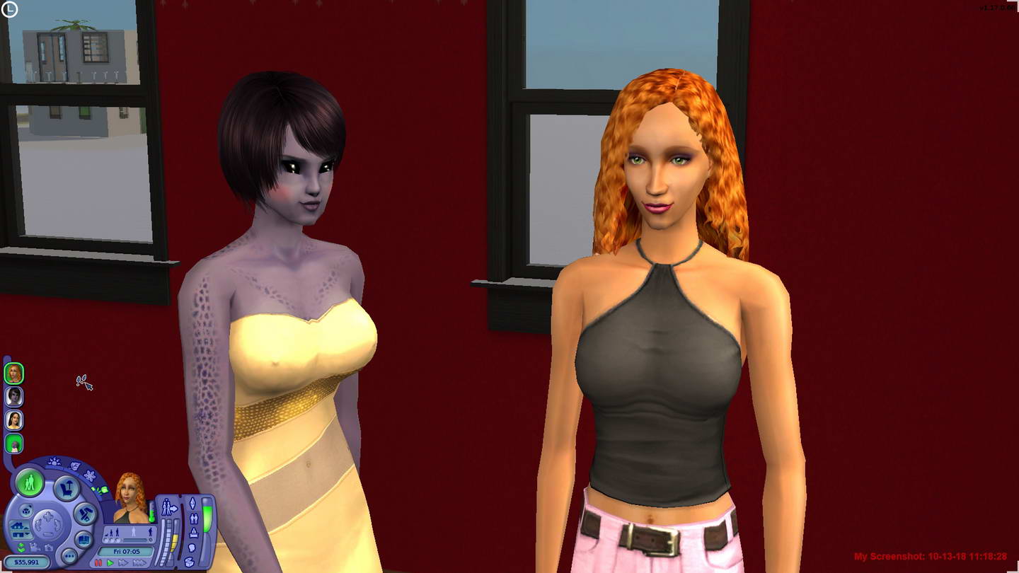 Yeah, the Caliente sisters (you're aware that they are 25% alien?) earned their names... Nina, in the same game, is now married to a half-alien female romance sim. They both hop from one bed into the other, but they also have two children together. One with normal skin and alien eyes, the other with alien skin and normal eyes. Smile