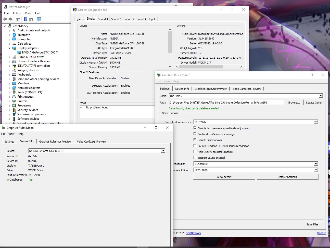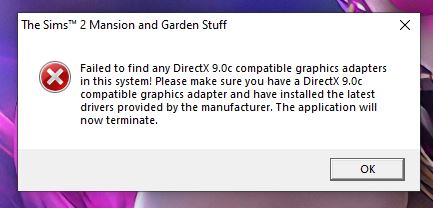 Hi, I'm trying to play TS2 Ultimate Collection but i keep getting the directx 9 error when trying to open it. I've tried graphics rule maker, trying to put it in window mode,and other things i tried following a post from on here but when i go to my <computername>-config-log.txt in logs theres no graphics device info.