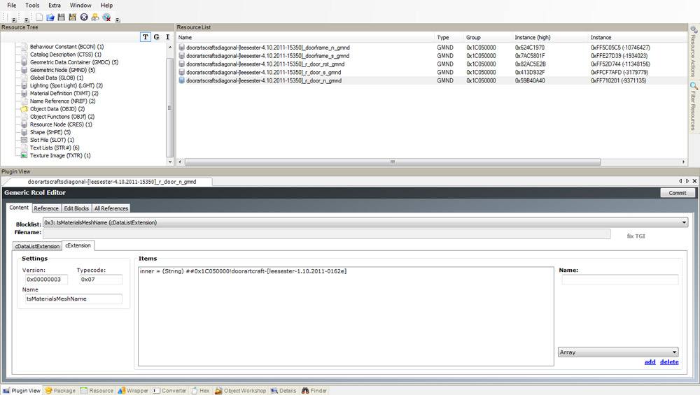 GMND (tsMaterialsMeshName) = link to the custom item cres