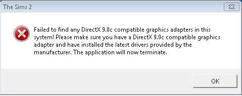 it gives me this error: "Failed to find any DirectX 9.0c compatible graphics adapters in this system! Please make sure you have a DirectX 9.0c compatible graphics adapter and have installed the lates drivers provided by the manufacturer. The application will not terminate."